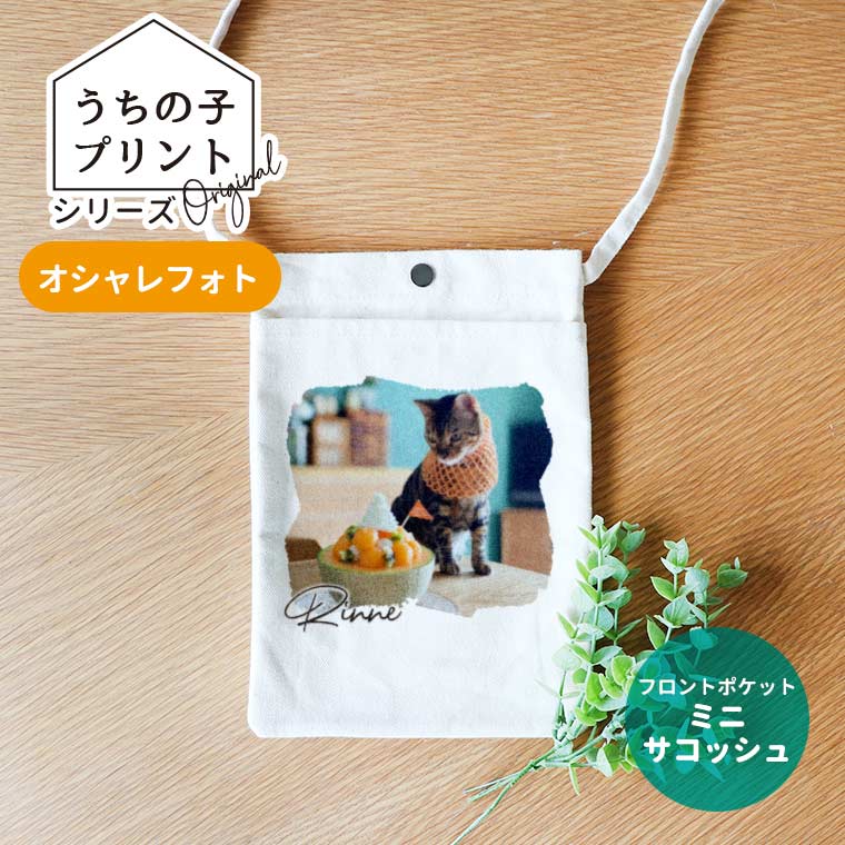 うちの子プリントシリーズ オシャレフォト フロントポケットミニサコッシュ ナチュラルカラー アンシャンテラボ / オリジナル サコ...