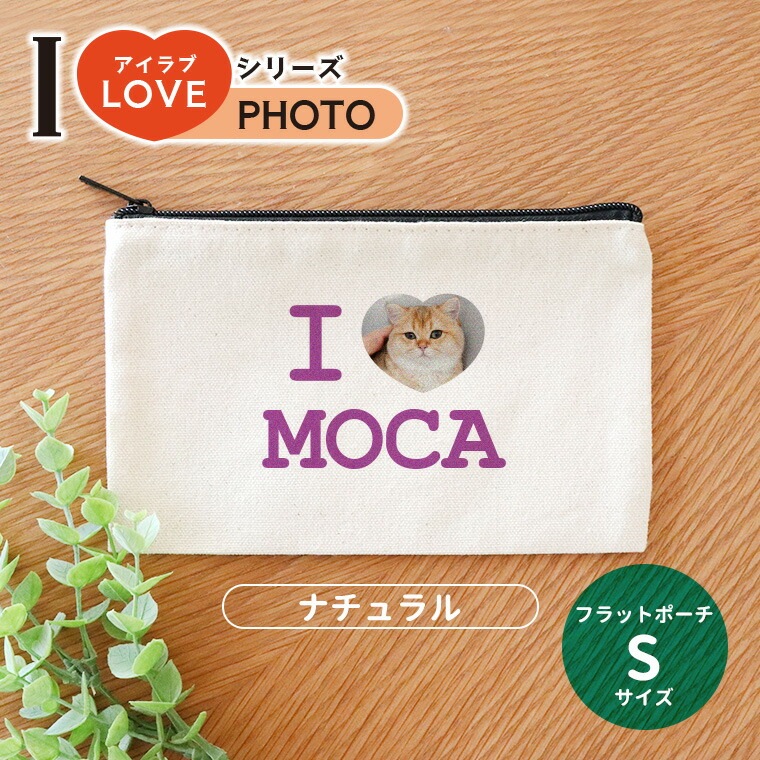 フラットポーチ ナチュラル Sサイズ アイラブシリーズ フォト アンシャンテラボ / オリジナルポーチ love 写真 印刷 ペッ...