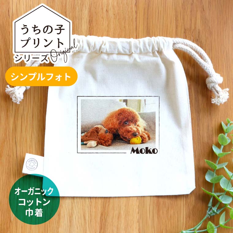 うちの子プリントシリーズ シンプルフォト オーガニックコットン巾着 ナチュラル アンシャンテラボ / ポーチ オリジナルポーチ 写...