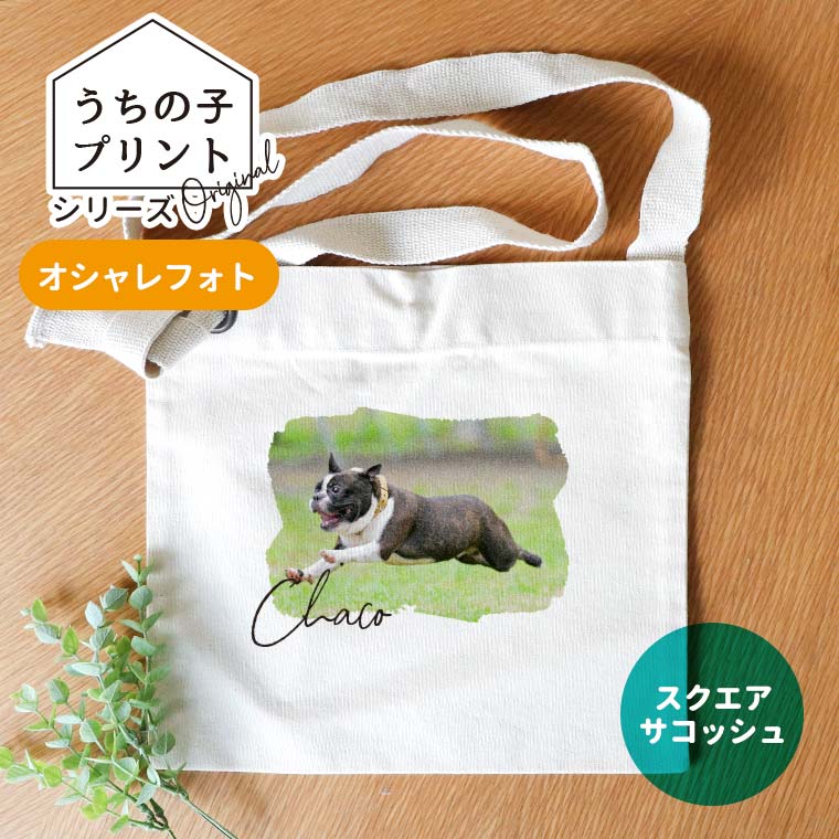 うちの子プリントシリーズ オシャレフォト スクエアサコッシュ ナチュラルカラー アンシャンテラボ / サコッシュ オリジナルサコッ...