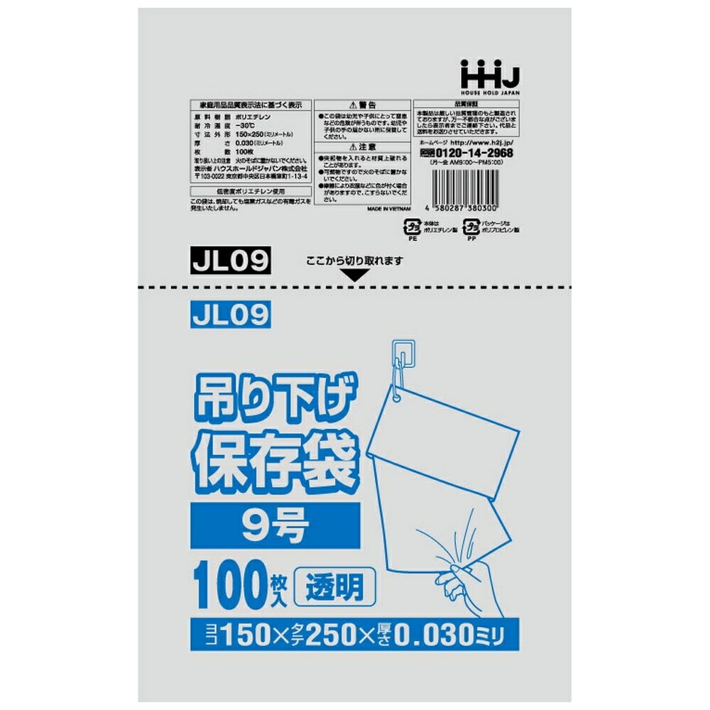 【個人宅配送可】吊り下げ保存袋(規格袋) No.9 0.03×150×250mm 100枚×80冊 JL09【取り寄せ商品・即納不...