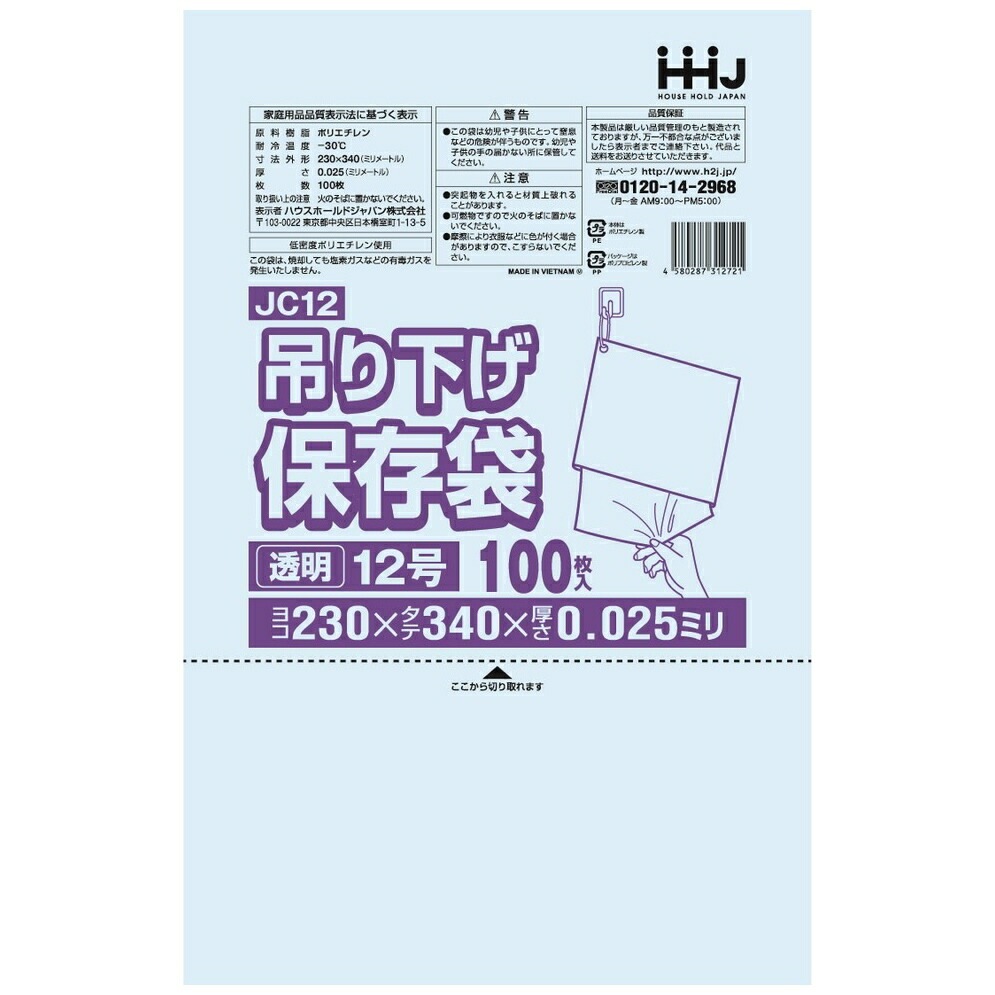 【個人宅配送可】吊り下げ保存袋(規格袋) No.12 0.025×230×340mm 100枚×50冊 JC12【取り寄せ商品・即...