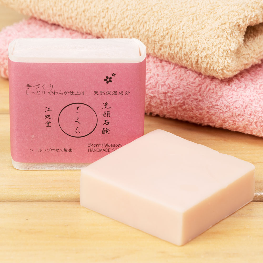 江処堂 洗顔石鹸 さくら やさしい桜の香り 天然の保湿成分をまるごと閉じ込めたハンドメイド石けん Cherry blossoms ...