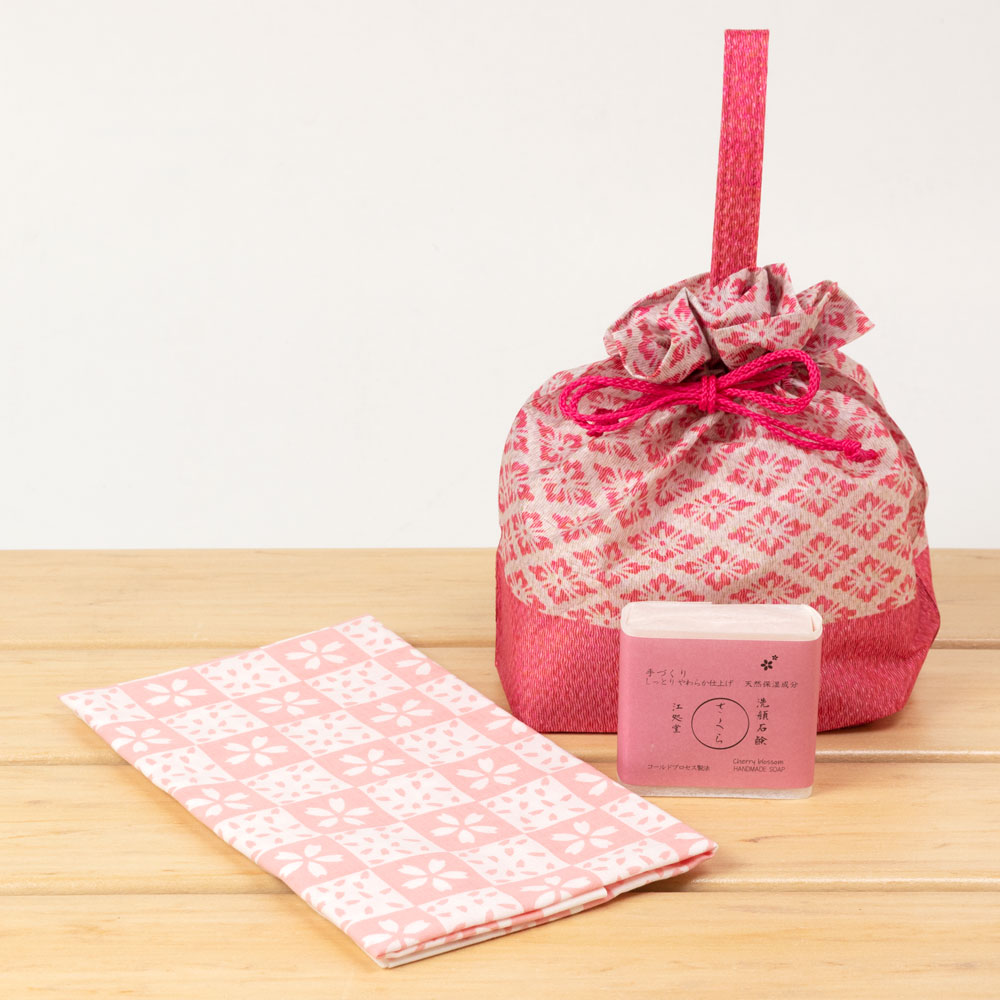 江処堂 洗顔石鹸セット さくら やさしい桜の香り 手ぬぐい・巾着付き 天然の保湿成分をまるごと閉じ込めたハンドメイド石けん Che...