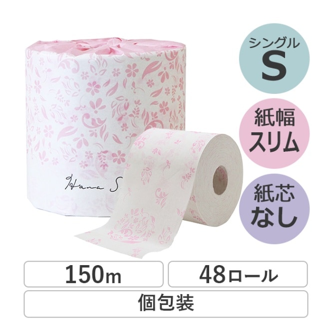 業務用 トイレットペーパー シングル 150m 48ロール 花柄 プリント有 ハナスマイル 芯なし スリム幅(107mm) 1ロー...