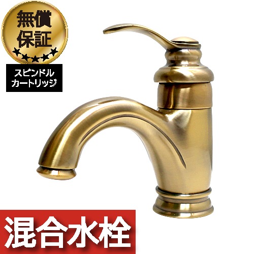 蛇口 混合水栓 シングルレバーハンドル アンティークゴールド(古金) [幅6×奥行17×高19.5×吐水口高5cm] INK-03...