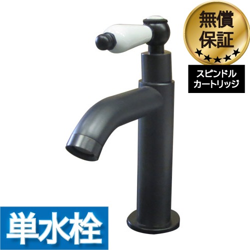 洗面水栓 蛇口 水栓金具 単水栓 シングルレバーハンドル 陶器 トールタイプ ブラック(黒) 奥行16×吐水口高22.5cm IN...