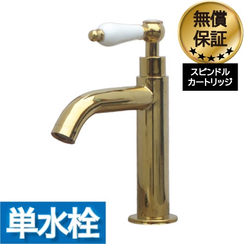 洗面水栓 蛇口 水栓金具 単水栓 シングルレバーハンドル 陶器 トールタイプ ゴールド(金) 奥行16×吐水口高22.5cm IN...