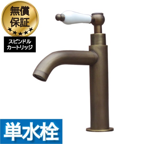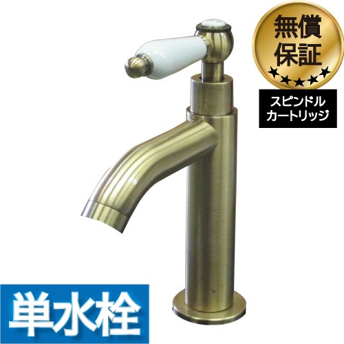洗面水栓 蛇口 水栓金具 単水栓 シングルレバーハンドル 陶器 アンティークゴールド(古金) 奥行16×吐水口高9cm INK-0...
