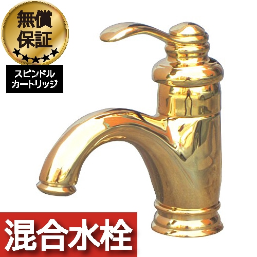 蛇口 混合水栓 シングルレバーハンドル ゴールド(金) [奥行17×吐水口高5cm] INK-0303109H