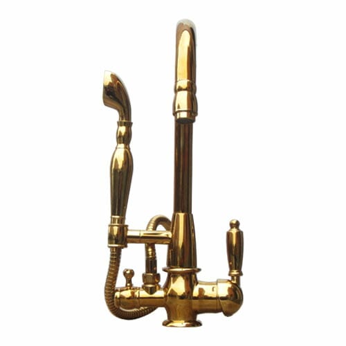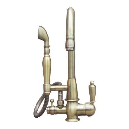 シャワーヘッド付き 混合水栓 スパウト可動式 アンティークゴールド(古金) 奥行22.5×吐水口高24.5cm INK-03010...