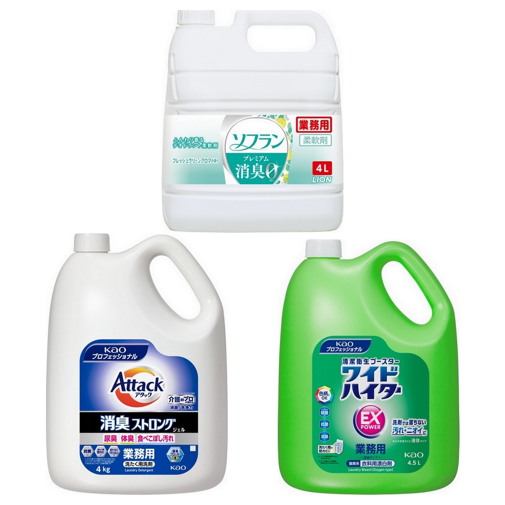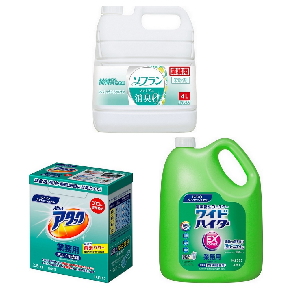 花王 粉末洗たく洗剤 アタック 業務用 2.5kg+衣料用酸素系漂白剤 ワイドハイターEXパワー 4.5L+ライオン 柔軟剤 ソフ...