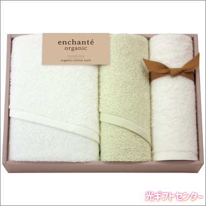 enchante organic アンシャンテオーガニック スリムバス・フェイスタオルセット アイスグリーン 55050