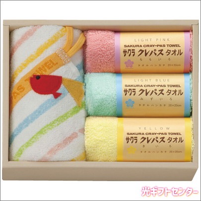 SAKURA クレパスタオル フェイス・ウォッシュ・タオルハンカチセット CR23300