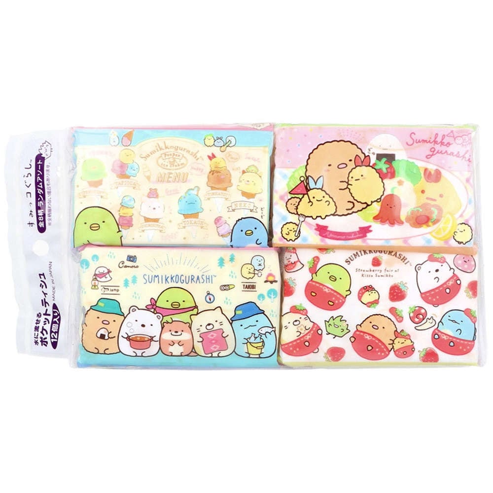 水に流せるポケットティシュ すみっコぐらし 全8柄ランダムアソート 16枚(8組)×12個入