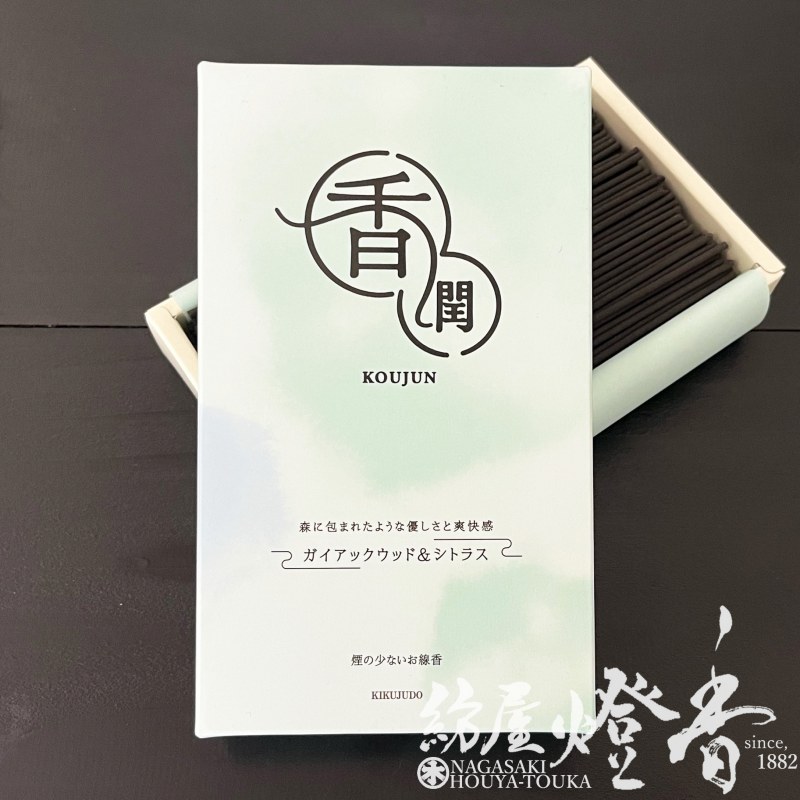 お線香『森の優しさと爽快感【香潤-KOUJUN-/ガイアックウッド&シトラス】短寸大バラ詰[少煙]』菊寿堂