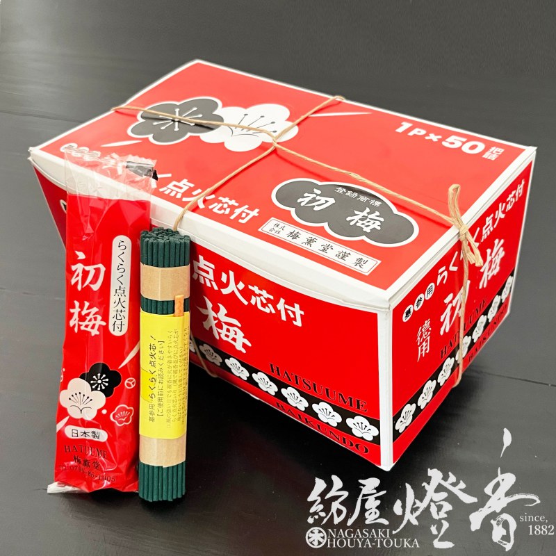 墓参り線香/杉線香『懐かしい香り【らくらく点火芯付・初梅(はつうめ)-HATSUUME-/1P×50把詰】紙箱入[有煙]』梅薫堂