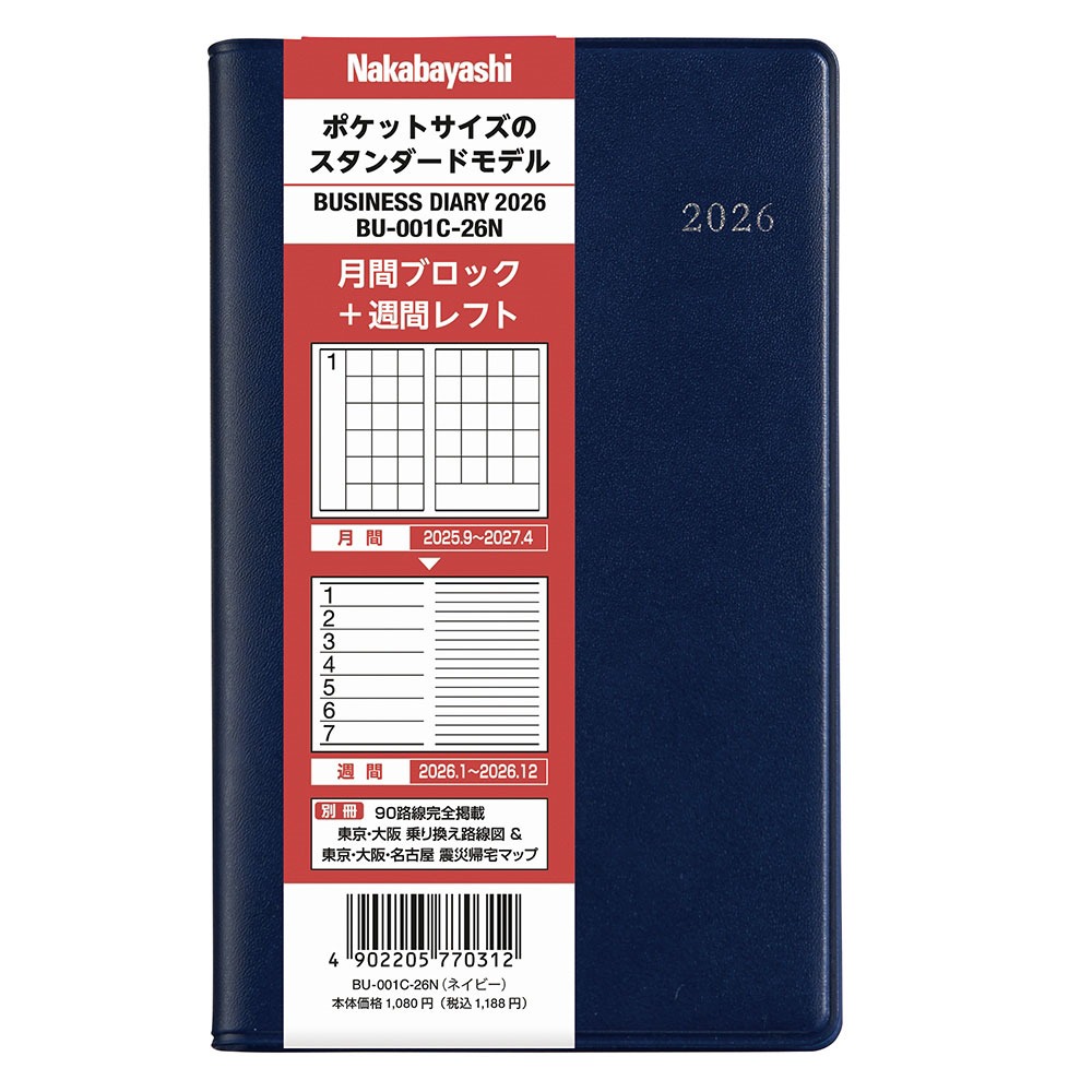 【未使用】ナカバヤシ 手帳 2026 ビジネスダイアリー 月別レフト BU-001M-26N●メール便●代引き不可