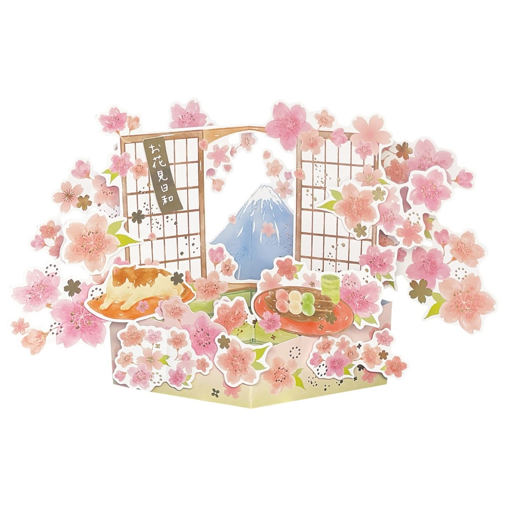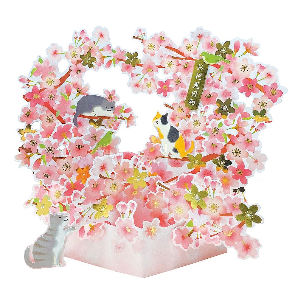 桜ポップアップカード 桜と猫