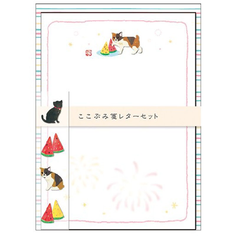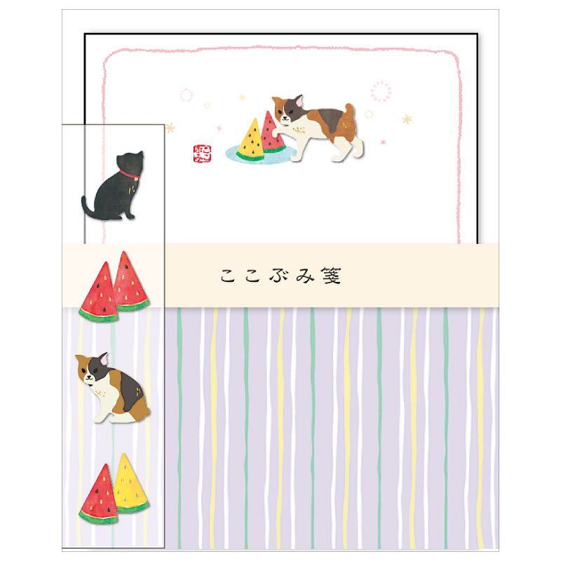 ここぶみ箋レターセット/西瓜と猫