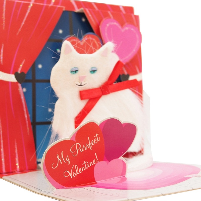 UP WITH PAPER 【バレンタイン】 ポップアップ グリーティングカード (ペルシャ猫×リボン)