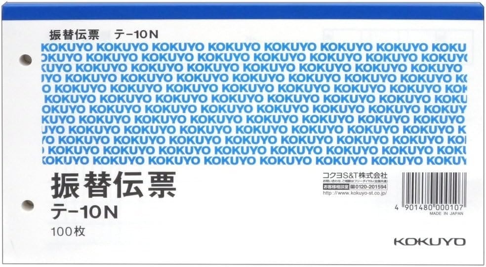 未使用品 コクヨ 振替伝票 白上質紙 7行 別寸 100枚 テ-10N×3冊セット【送料無料】【メール便でお送りします】代引き不可