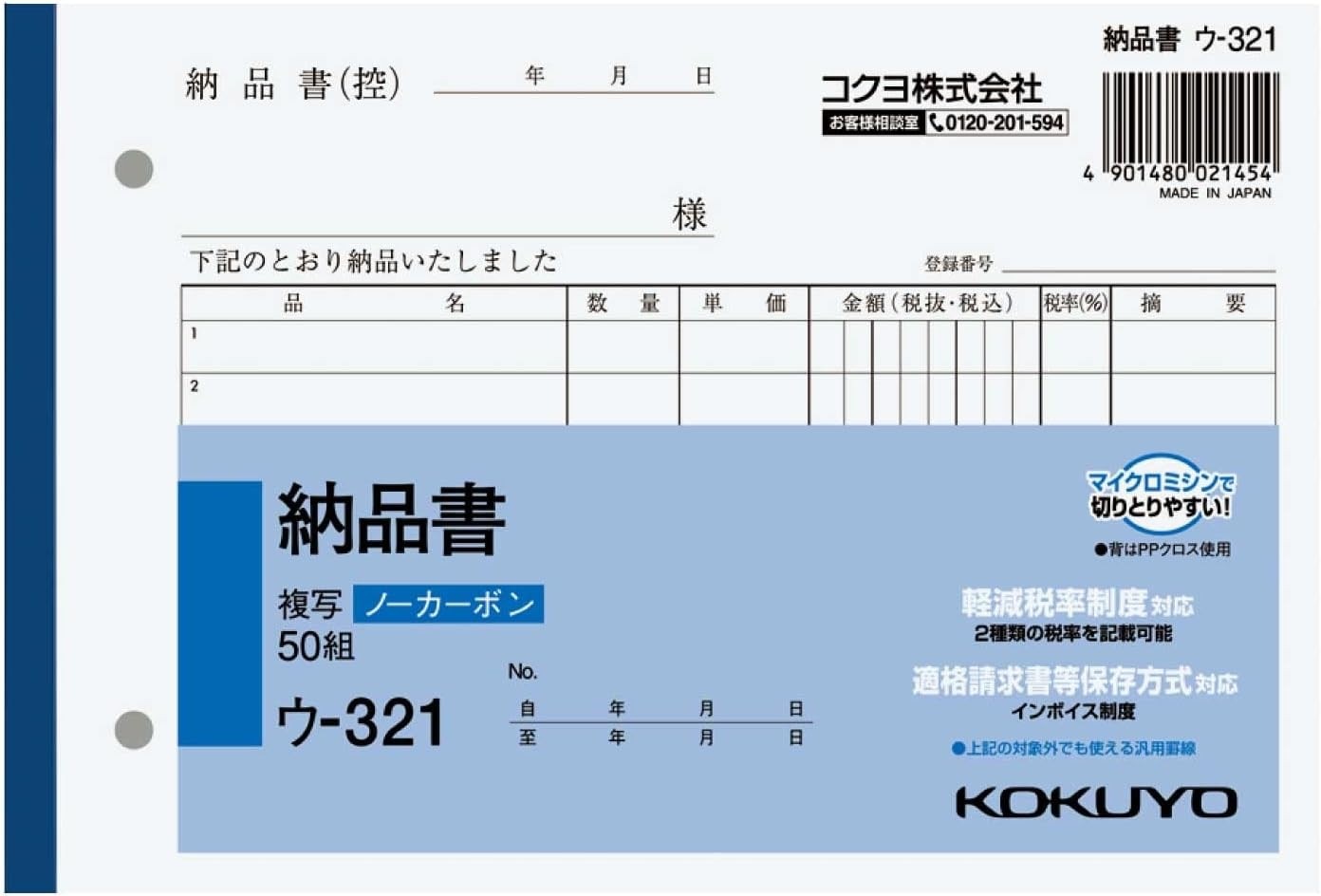 未使用品 コクヨ 複写簿 ノーカーボン 納品書 B6 横型 7行 50組 ウ-321×2冊セット【送料無料】【メール便でお送りしま...