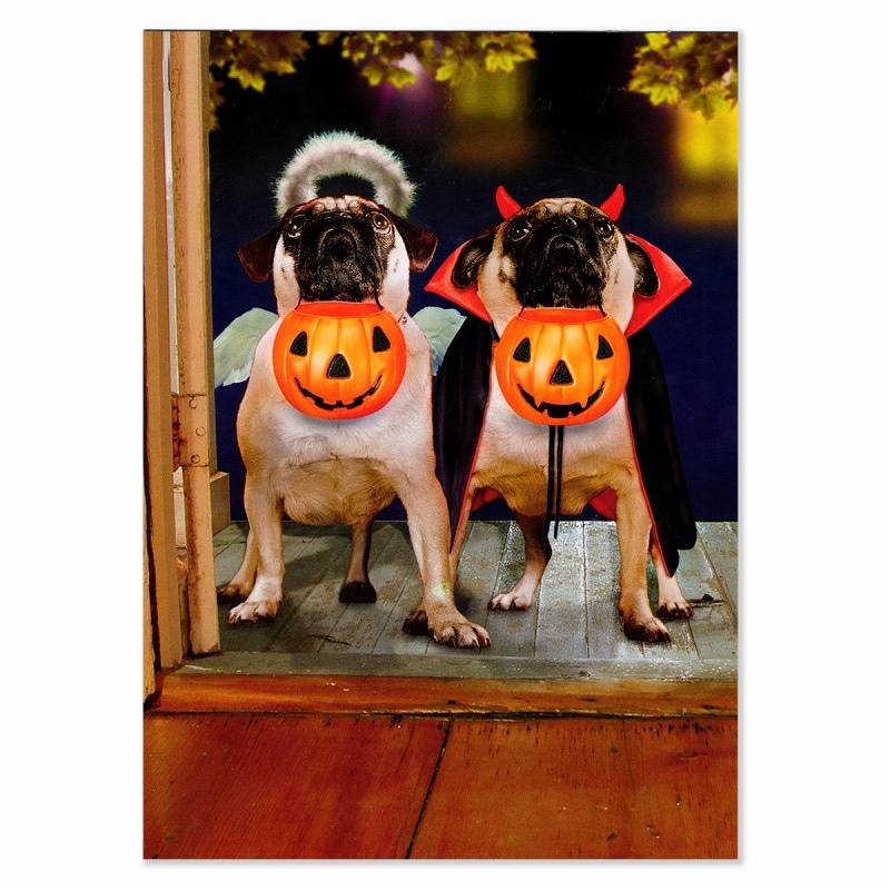 AVANTI PRESS 二つ折り ハロウィン ポップアップ グリーティングカード (天使パグ×悪魔パグ2)