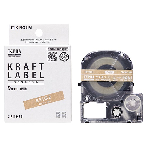 [SPK9JS] テプラPROテープカートリッジ 9mm クラフト紙ベージュ 白文字