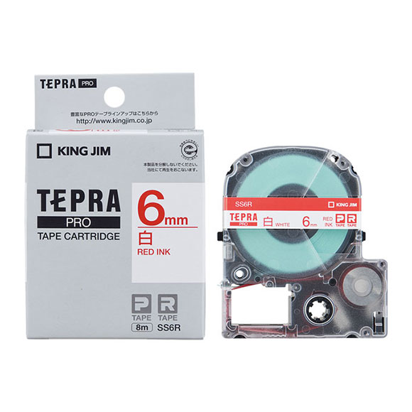 [SS6R] テプラPROテープカートリッジ 6mm 白/赤文字