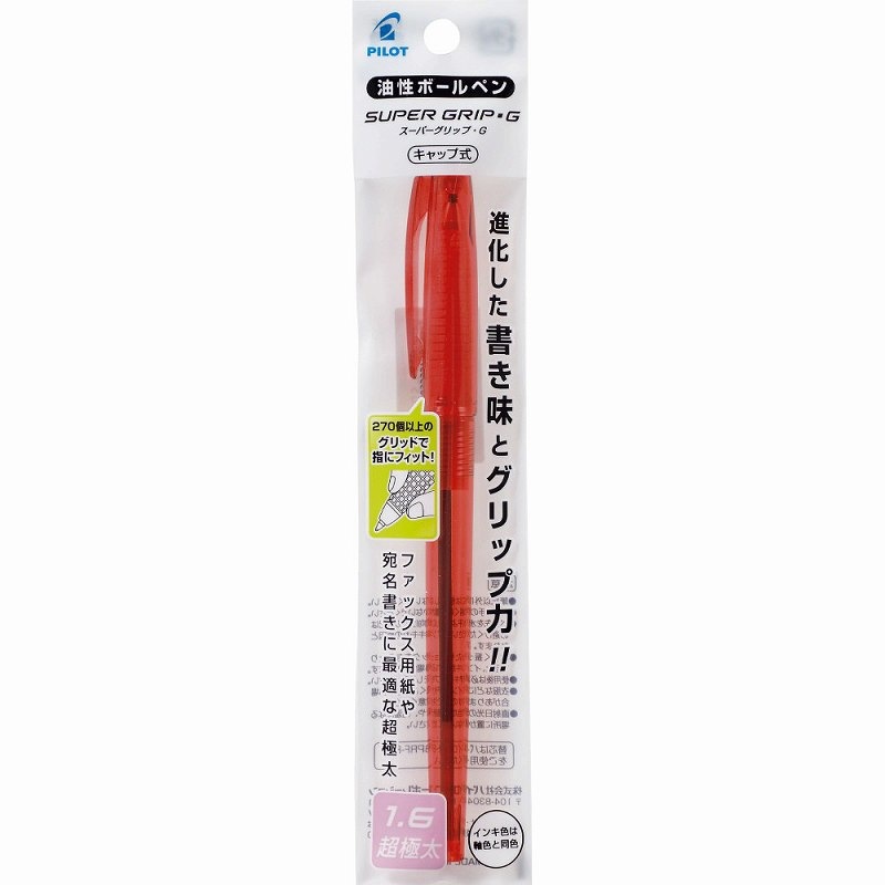 パイロット 油性ボールペン スーパーグリップG キャップ式 1.6mm 赤 P-BSGC-10BB-RR