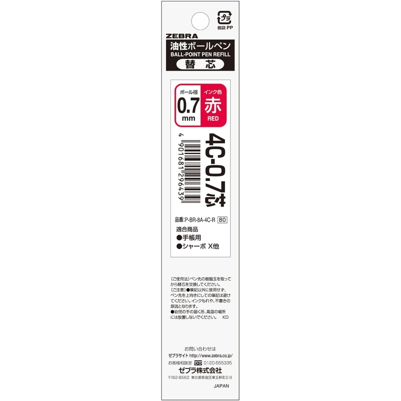 ゼブラ 4C-0.7 替え芯 赤 P-BR-8A-4C-R