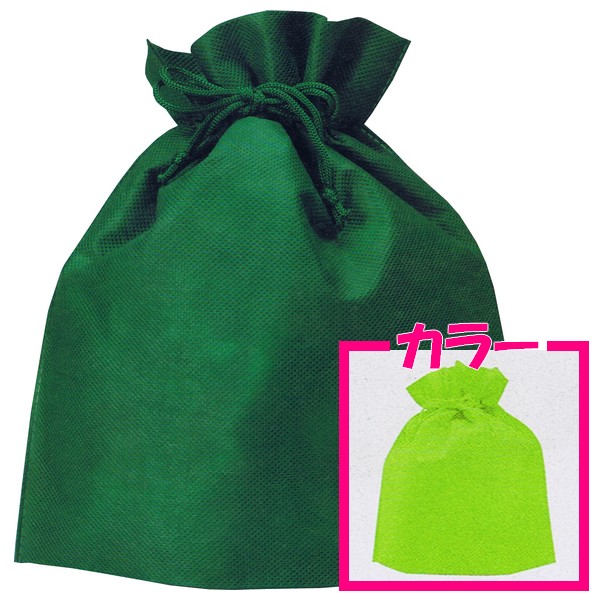 【送料無料】不織布巾着袋(大) 無地 イエローグリーン 250×280×底マチ80mm 50枚【メーカー直送・代引き不可・時間指定...