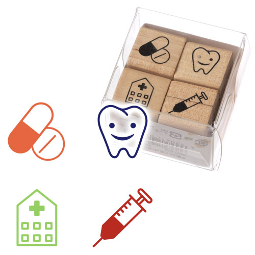手帳はんこ部 お医者さん (0409-012) ミニはんこ4個セット 手帳やふせんに 簡単スケジュール管理 ラバースタンプ こども...