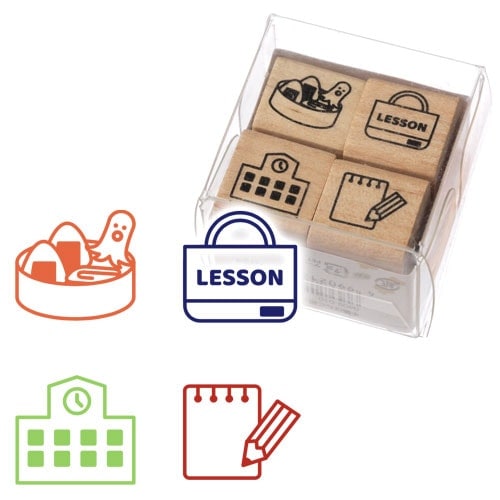 手帳はんこ部 学校 (0409-010) ミニはんこ4個セット 手帳やふせんに 簡単スケジュール管理 ラバースタンプ こどものかお...