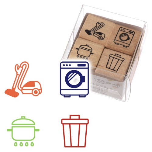 手帳はんこ部 家事 (0409-011) ミニはんこ4個セット 手帳やふせんに 簡単スケジュール管理 ラバースタンプ こどものかお...