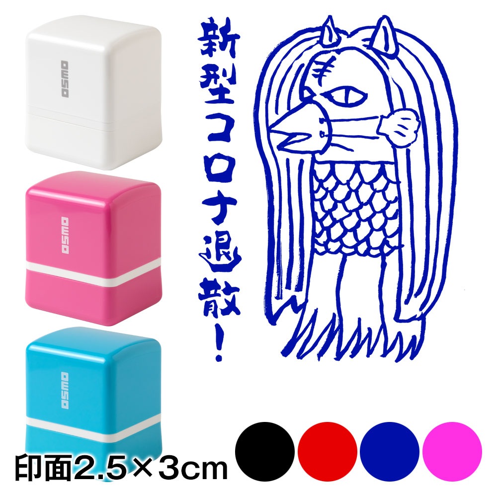 アマビエチャレンジ!! アマビエ猫山田スタンプ浸透印 新型コロナ退散! 印面2.5×3cmサイズ (2530) Self-inki...