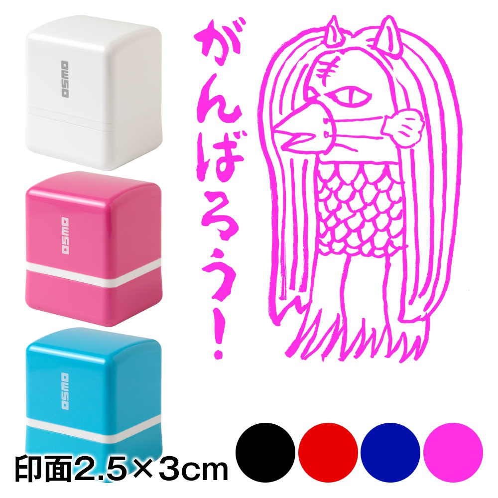 アマビエチャレンジ!! アマビエ猫山田スタンプ浸透印 がんばろう! 印面2.5×3cmサイズ (2530) Self-inking...