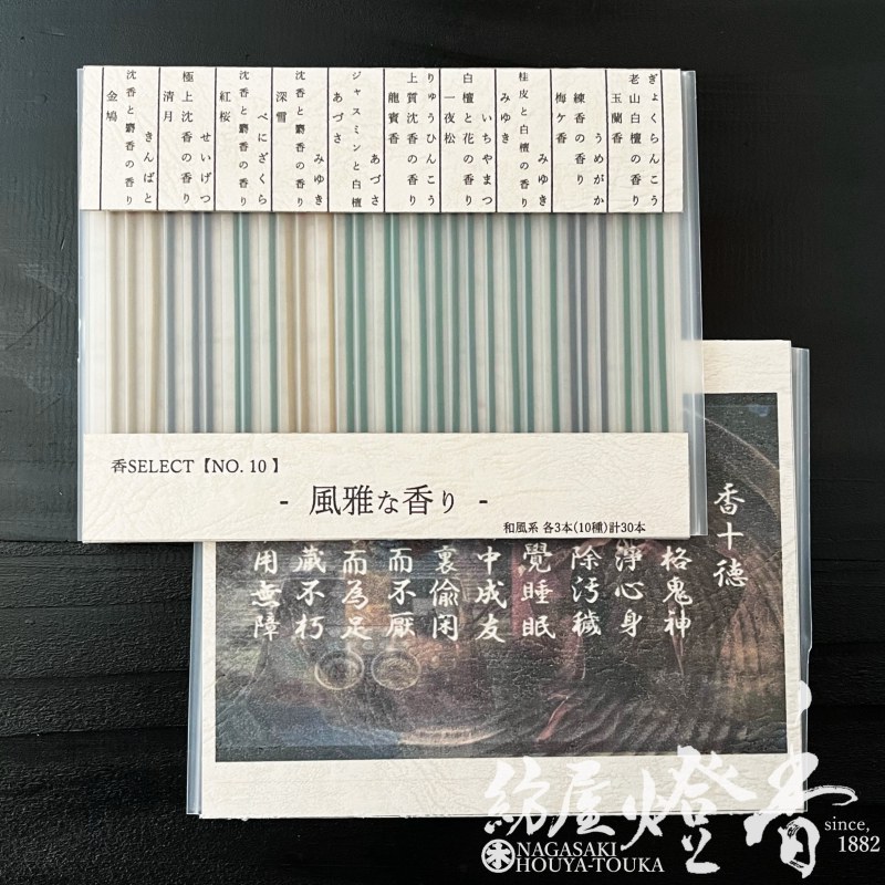 お香/お試し『SELECT香NO,10【風雅な香り-FUGA-/10種/30本入】ミニ寸スティック』紡屋燈香オリジナル