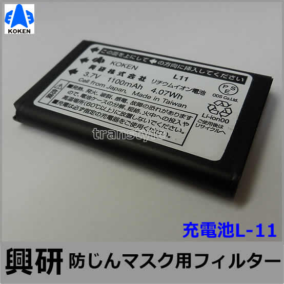 興研 電動ファン付マスク用 充電池L-11(BL-1005/7005/321用)【防じん作業/工事/医療用/粉塵/サカイ式/送風/...