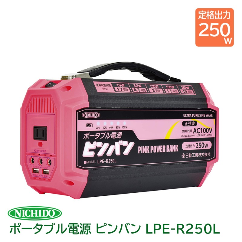 ポータブル電源 大容量 コンパクト 日動工業 ピンバン AC100V 250W LPE-R250L