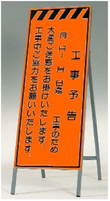 【送料無料】蛍光高輝度反射立看板(自立型) つくし工房 KK-46「工事予告」全高1600(板面1400×550)【メーカー直送/...