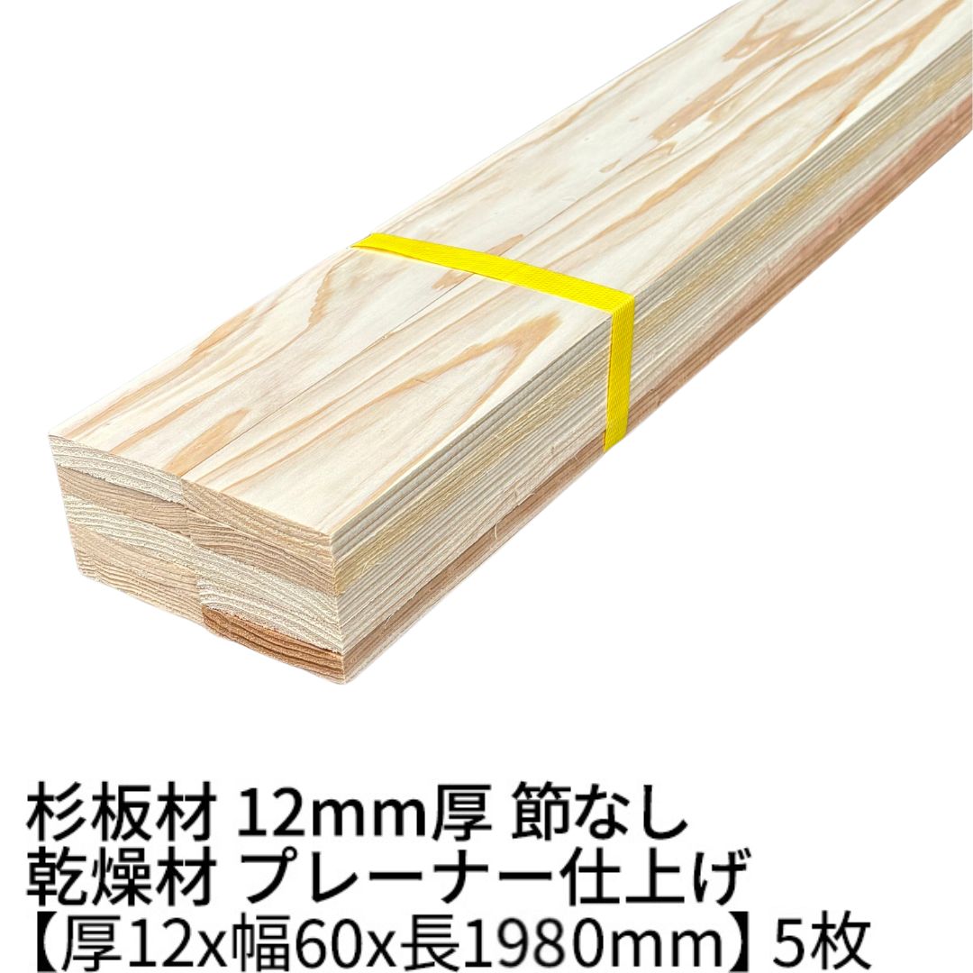 杉板 厚み12×幅60×長さ1980mm 5枚 節無し 乾燥材 プレーナー加工 12×60