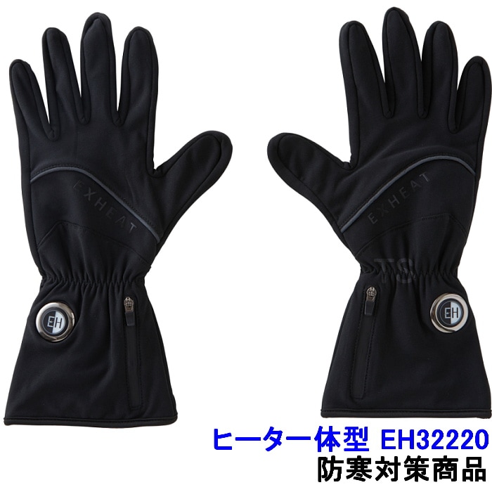 防寒着 ヒート一体型 EH32220 カーボンヒーター内蔵 ウォームウェア 手袋 グローブ すぐ暖かい EXHEAT バッテリー付...