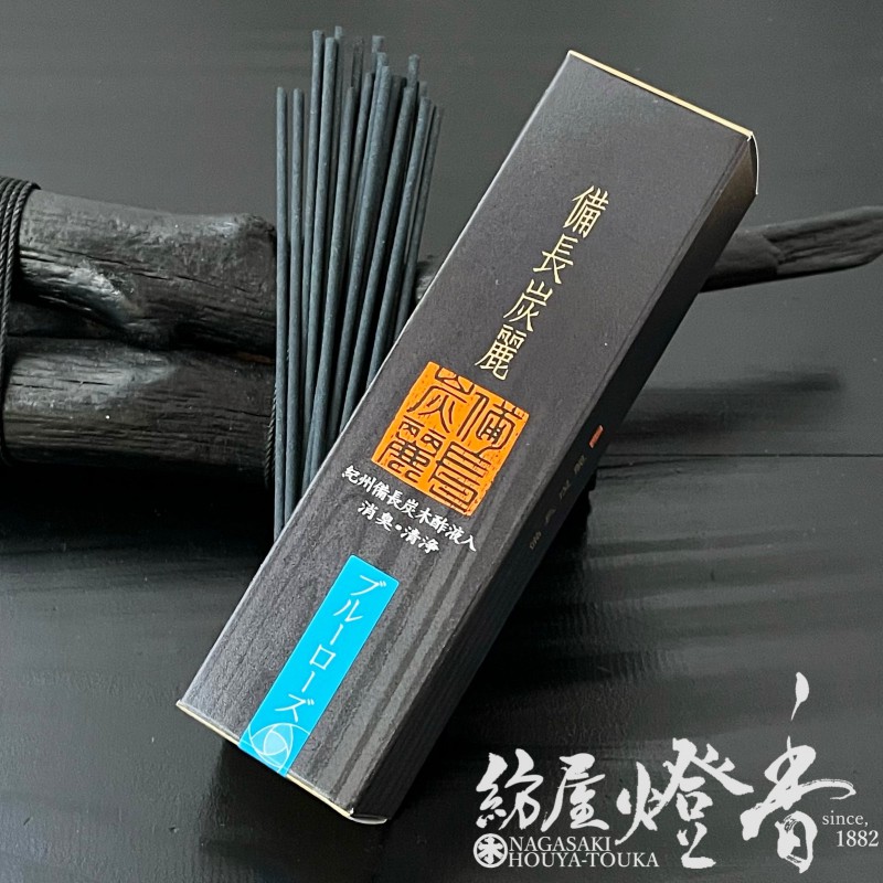 お試し/配り物『『備長炭麗(びんちょうたんれい)【ブルーローズ】短寸バラ詰小箱[少煙/消臭]』梅薫堂