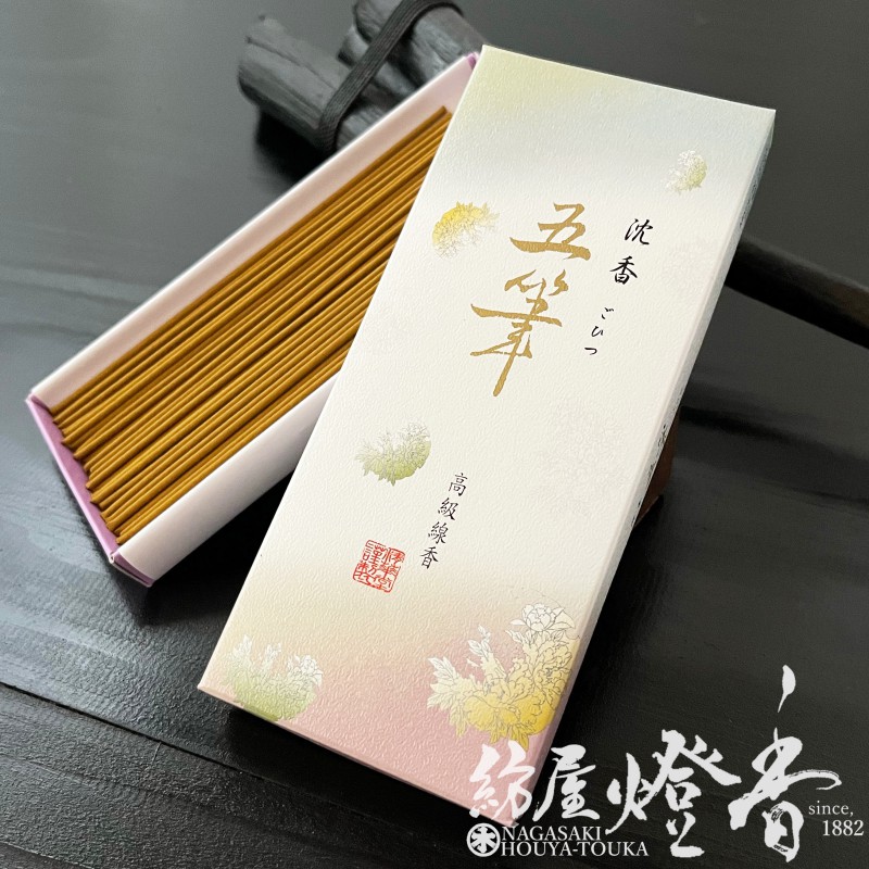 配り物/線香『三種の高級沈香の妙【沈香・五筆(じんこうごひつ)-GOHITSU-】短寸小箱平バラ詰[有煙]』精華堂