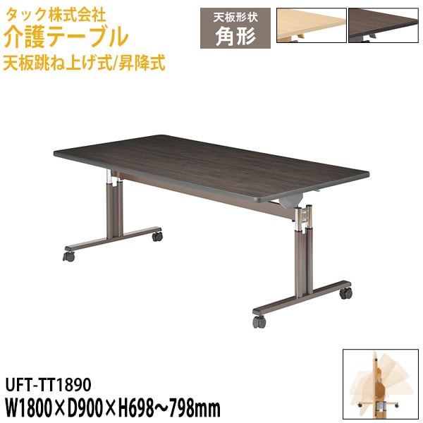介護用テーブル 天板跳ね上げ式/昇降式 UFT-TT1890 幅180×奥行90x高さ69.8~79.8cm
