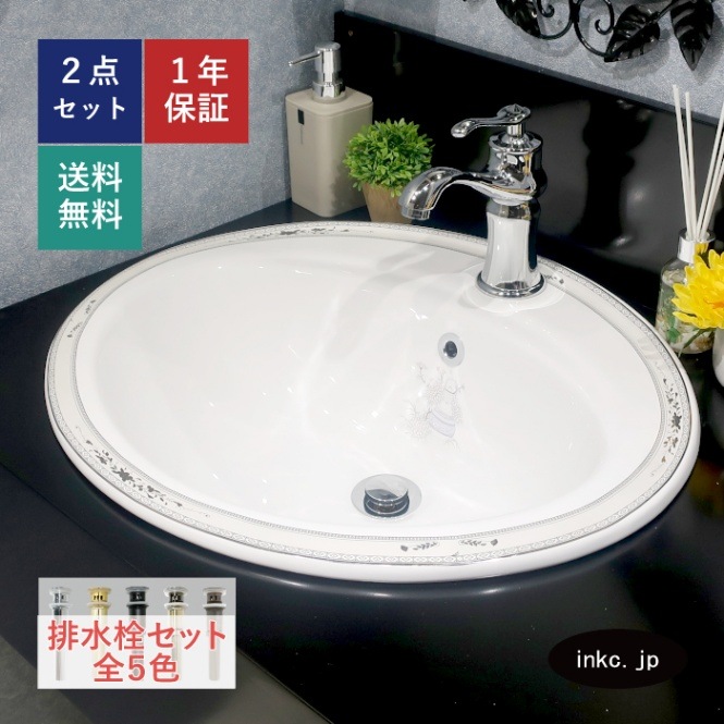 洗面ボウル おしゃれ 埋め込み 多少の柄のずれ有り オーバーフロー有り W560×D485×H200 INK-0403011H
