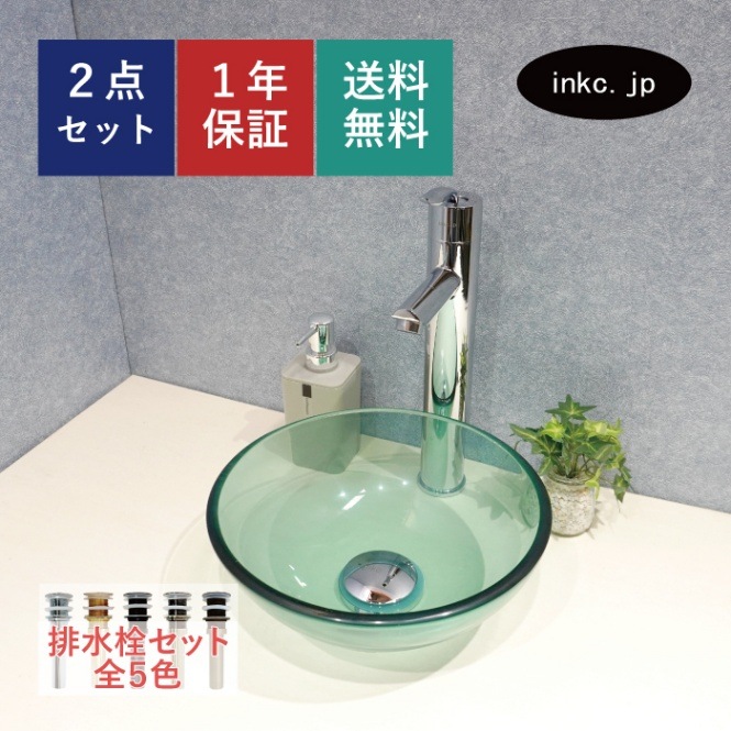 小さい ガラス洗面ボウル 手洗い鉢 グリーン 緑 置き型 Φ280×H105 品番280mm-gr