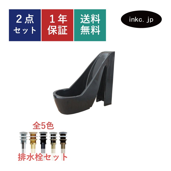 洗面ボウル ハイヒール 黒 人工大理石 ユニーク 手洗い 細かいキズあり オーバーフロー無し W280×D605×H555 INK...